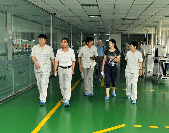 _                市中級(jí)人民法院副院長(zhǎng)劉奇(左二),凌河區(qū)法院院長(zhǎng)黃萍(右二)到我集團(tuán)生產(chǎn)現(xiàn)場(chǎng)實(shí)地調(diào)研。