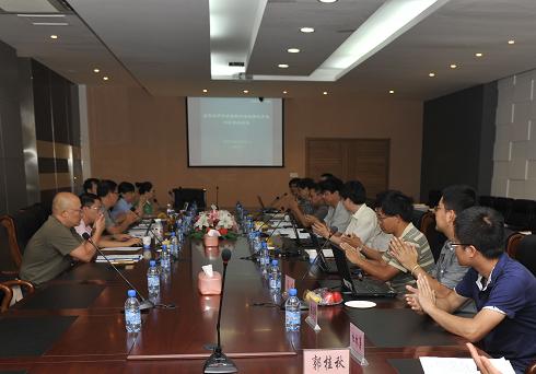 左一科技部科技評估中心張春鵬,左二中科院高能物理所研究員劉宇,左三中科院聲學所朱敏,左四科技部科研條件與財務司處長孫增奇,右一中科院聲學所鄧鍇,右二中科院聲學所張向軍,右三中科院聲學所吳健波,右四中科院聲學所張兆偉。