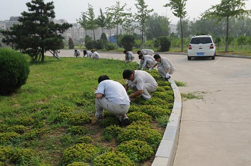 會(huì)后,一場(chǎng)黨員帶頭、員工共同參與的集體除草活動(dòng)熱火朝天地開展起來。大家有的用手拔、用的用鐮刀割、有的用袋裝、用的用車推,忙的不亦樂乎。快者幫助慢者,年輕者幫助年長者,大家一邊勞動(dòng),一邊互相問候,其樂融融。表面的雜草連根拔起,死角區(qū)域進(jìn)行了二次清除。烈日炎炎下,盡管很多人的臉上流下了晶瑩的汗滴,但他們依然在繼續(xù),沒有停歇。功夫不負(fù)有心人,經(jīng)過2個(gè)小時(shí)的辛勤勞動(dòng),責(zé)任區(qū)域內(nèi)的雜草、雜物被徹底清除。當(dāng)大家回望整潔有序的草坪時(shí),心中無比喜悅。